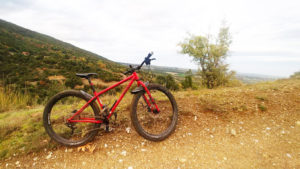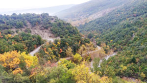 The most interesting is that even the Komoot application did not believe in its existence and stubbornly advised to turn back. But the road exists and gives great riding pleasure. It crosses many smaller and larger valleys and gorges, so it’s still up and down. at 13 km we enter the asphalt road, you can turn left and take a crazy downhill ride to Leptokaria (swiming in the sea even in November) in a few moments, or turn right if someone wants to drive around the whole Olympus massif (see here).