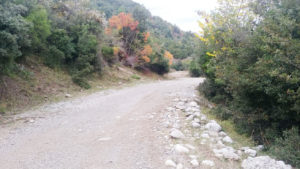 A key route if you are trying to circle Olimp on dirt roads! It begins in Litochoro and the first 4 km section is an asphalt road (but very little frequented). The most interesting is from 5 to 13 km. Excellent dirt road, sometimes a bit difficult technical (mountain bike advisable, but gravel can also do it :-), leading exactly on the border where farmlands and pastures end and the forests of Olympus begin.