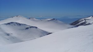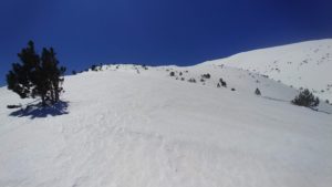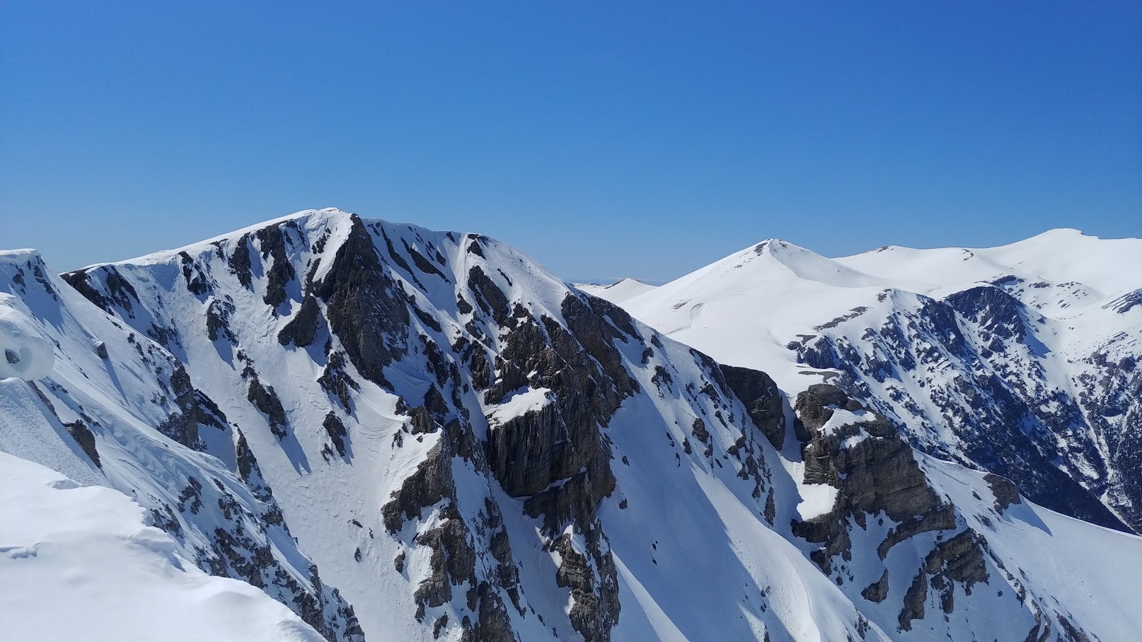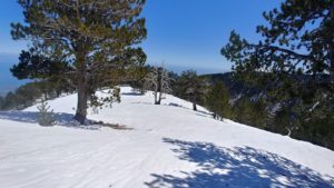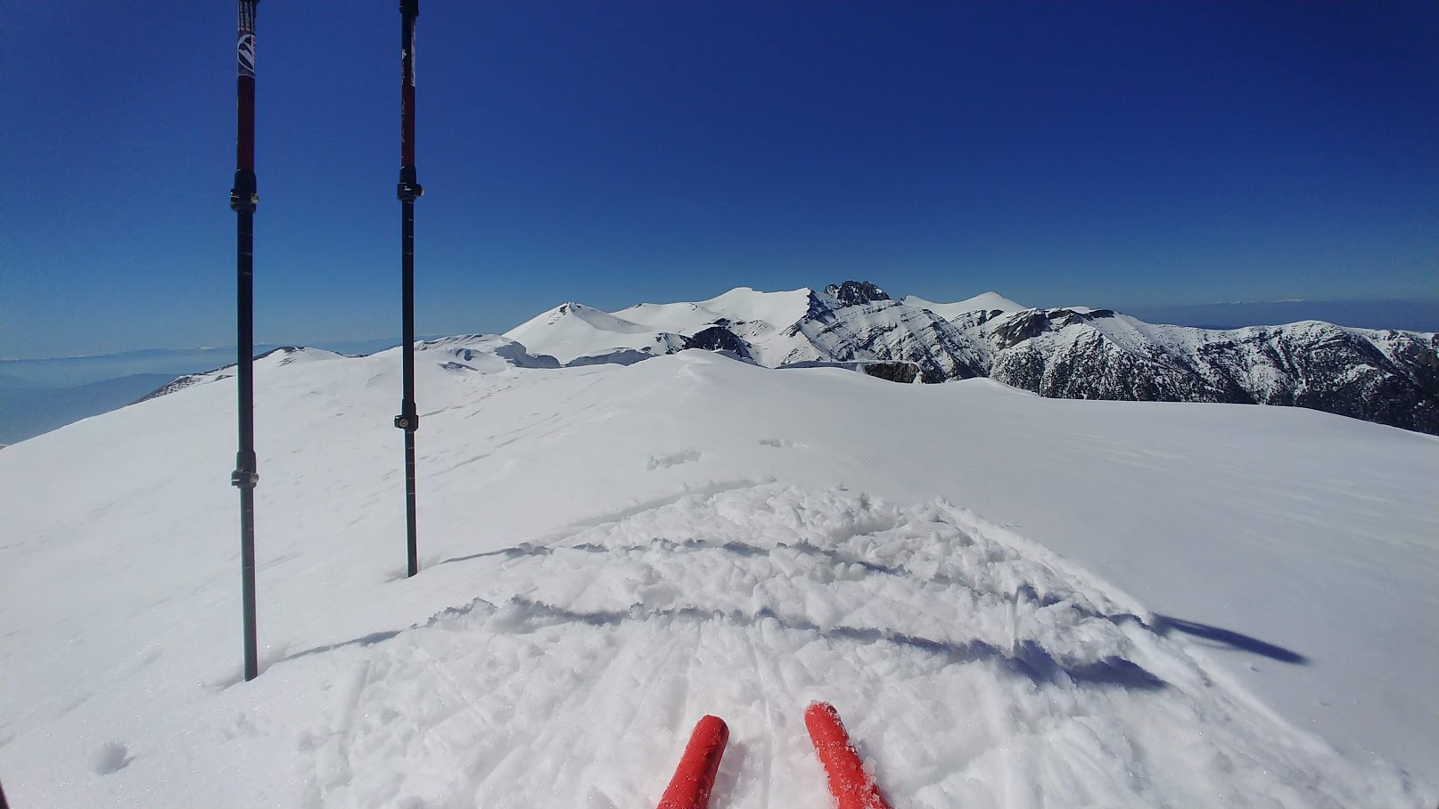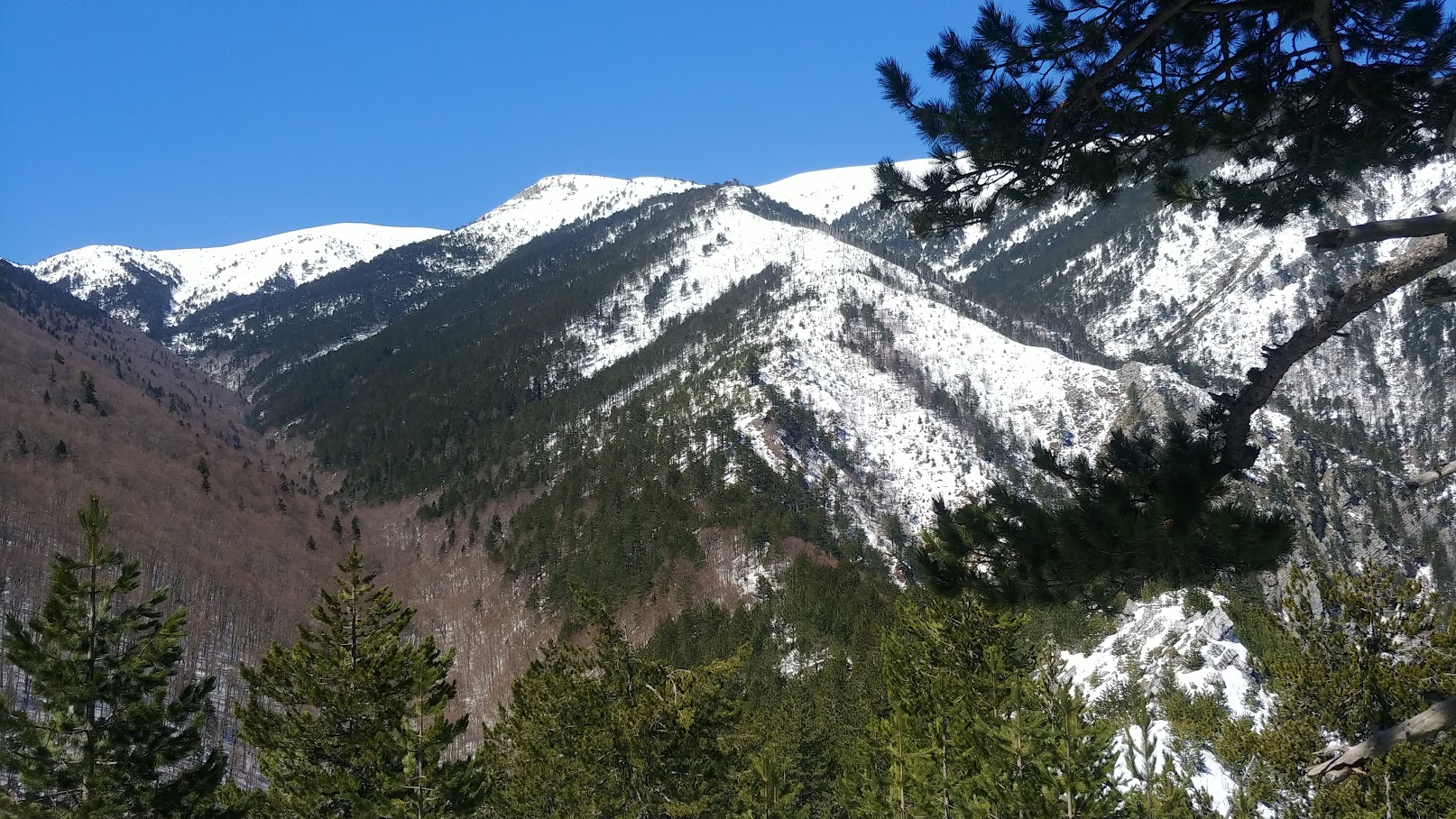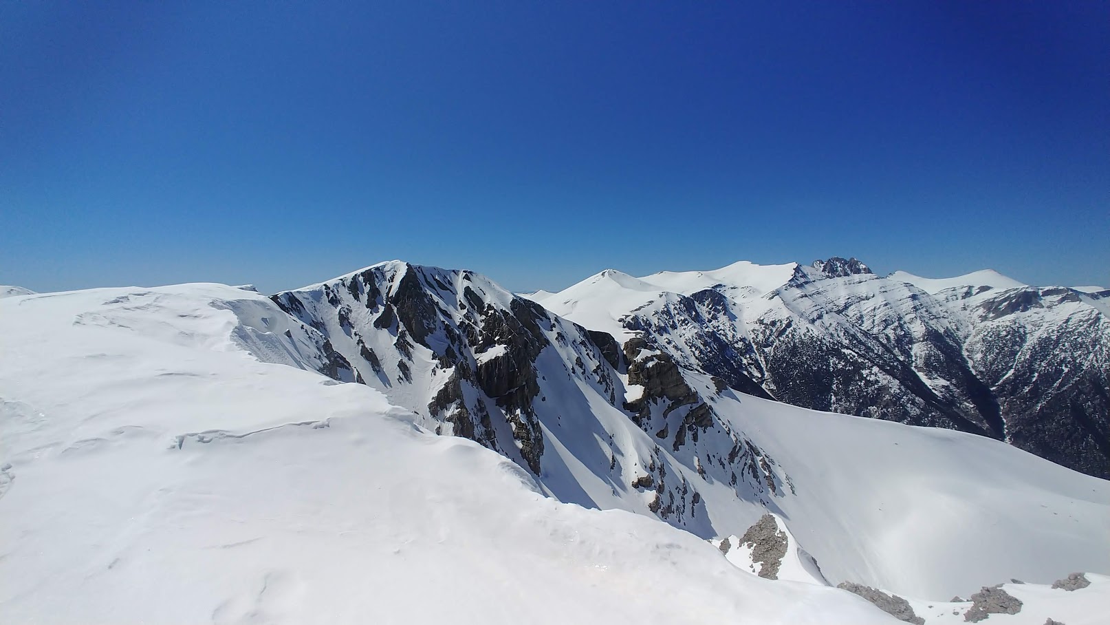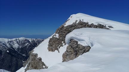 One of the most interesting possibilities to reach the top of Kalogeros – the highest peak on the southern side of the Enipeas Gorge from Litochoro. The route not present major orientation difficulties, and you will find markings along almost entire length. To Kosti Rachi these are the Olympus Mythical Trail signs (red dots on a white background), then the old red signs, quite clearly visible, even when there is snow.