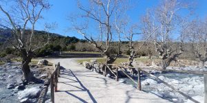 It is possible to choose a different route from Karya to Litochoro. The well-known and marked path from Karya to Litochoro leads through the Ano Pigadi Hut – this is the Olympus Mythical Trail running competition path and the route is permanently painted with red dots on a white background, so it’s very easy to find. However, it rises to over 1,300 m above sea level, so in February there is a lot of snow there. To avoid this, the following variant runs along an asphalt road from Karya to Ano Leptokarya for 20 km, but it is very beautiful and scenic, with minimal car traffic.