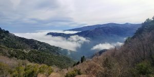 A lap along the entire Mount Olympus. The route is long but technically easy. The vast majority of it leads along comfortable dirt roads. It runs mostly at an altitude of 300 to 700 m above sea level, but several times exceeding 1000 m. In February, there was only snow on the 20 km section before Kokkinopilos, the rest of the route was without snow. In February 2022, the temperature during the day was 15 degrees Celsius.