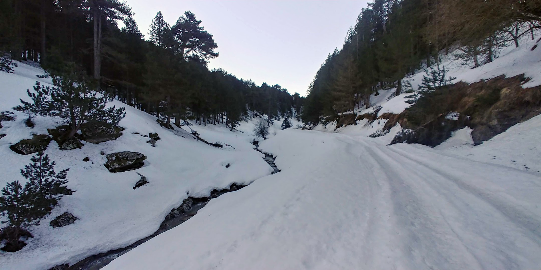 It is possible to choose a different route from Karya to Litochoro. The well-known and marked path from Karya to Litochoro leads through the Ano Pigadi Hut – this is the Olympus Mythical Trail running competition path and the route is permanently painted with red dots on a white background, so it’s very easy to find. However, it rises to over 1,300 m above sea level, so in February there is a lot of snow there. To avoid this, the following variant runs along an asphalt road from Karya to Ano Leptokarya for 20 km, but it is very beautiful and scenic, with minimal car traffic.