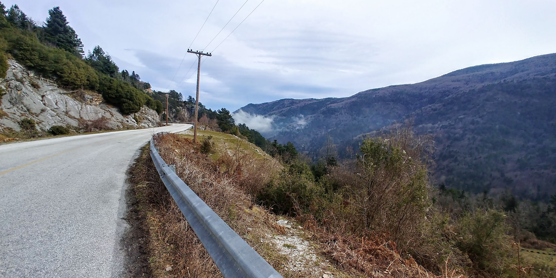 A lap along the entire Mount Olympus. The route is long but technically easy. The vast majority of it leads along comfortable dirt roads. It runs mostly at an altitude of 300 to 700 m above sea level, but several times exceeding 1000 m. In February, there was only snow on the 20 km section before Kokkinopilos, the rest of the route was without snow. In February 2022, the temperature during the day was 15 degrees Celsius.